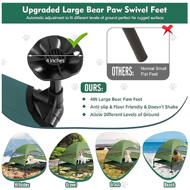 වියන් සහිත කැට් ඩෝග් ඇඳ, වියන් සහිත නවීකරණය කරන ලද උස් සුනඛ ඇඳ, ස්ථායී ස්ලිප් විරෝධී පාද සහිත අතේ ගෙන යා හැකි ඉහළ නැංවූ එළිමහන් සුනඛ ඇඳ, පුළුල් සෙවන සහිත සුරතල් ඇඳ ඇඳ, විශාල සුනඛයන් කඳවුරු බැඳීම, ගෘහස්ථ සහ එළිමහන් භාවිතය සඳහා ඇති දැඩි කරන ලද සුනඛ ඇඳන්.