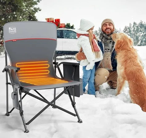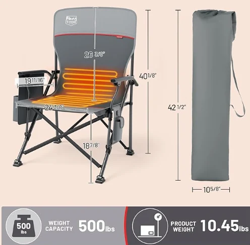 අභිරුචි රත් වූ ෆෝල්ඩින් ෆෝල්ඩින් පුටුව, ආපසු හැරවීම සහ ආසනය තත්පර 10 කින් 131 ° F දක්වා උණුසුම් කිරීම. ඕනෑම එළිමහන් අවස්ථාවක් සඳහා උණුසුම සපයන තාප සැකසුම් තුනක් (104 ° F, 122 ° F, 131 ° F)).