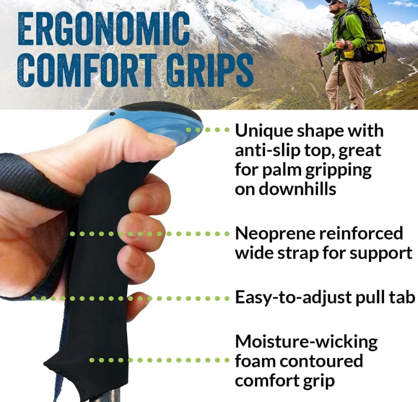 ද්විත්ව හසුරුවන පංති ධ්රැවය, වෙනස් කළ හැකි 2-කෑලි නැමීමේ කඳු බෑවුම් සහිත නැමීමේ / ඇවිදීම / ට්රේකින් ට්රැක්ස් අඟල් 13.5 ක් සහ බර අවුන්ස 11 කට වඩා අඩුය. සංචාරක පෙම්වතා සඳහා පරිපූර්ණ ත්යාගය. ඔබේ උස හා ඔබේ ග්රහණයන් තෝරාගත් පොලු තෝරන්න.