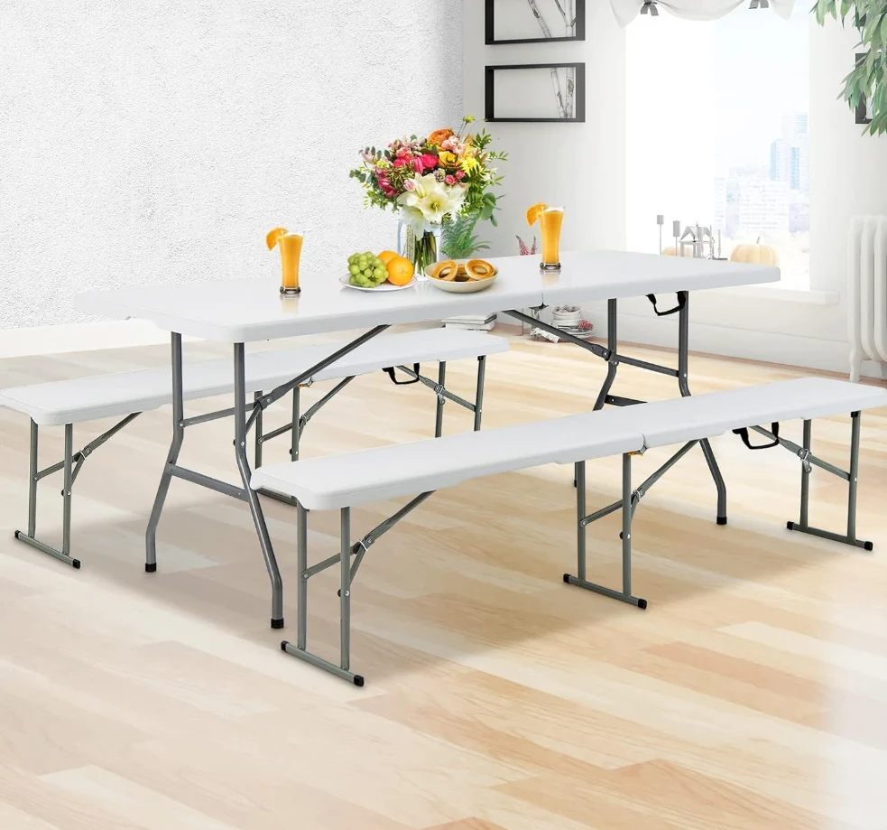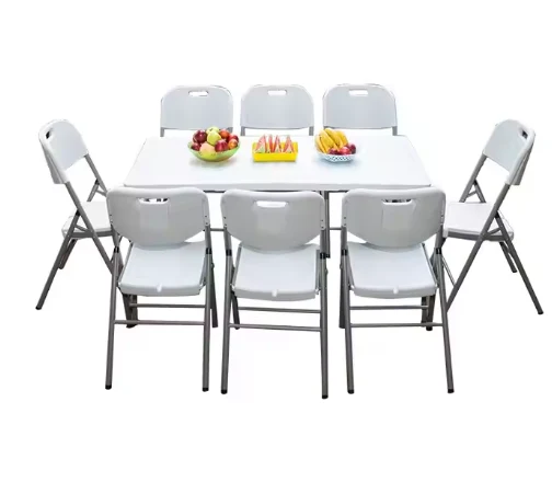 උසස් තත්ත්වයේ එළිමහන් කඳවුරු මේස, සුදු HDPE සුදු සෘජුකෝණාස්රාකාර විනෝද චාරිකා ප්ලාස්ටික් ඔසවා බැලීමේ එළිමහන් කඳවුරු වගුව, ආහාර, අතුරුපස, බීම හෝ සුලු කෑමක් හෝ සුලු කෑමක් සඳහා ඉඩකඩ සහිත අවකාශය සපයයි. පවුල් ආහාර වේලක් හෝ පක්ෂ රාත්රී භෝජන සංග්රහයක් සඳහා එක්රැස් වීමට මෙම නැමීමේ වගුවට පුද්ගලයින් 8 දෙනෙකු පමණ නවාතැන් ගත හැකිය. අහම්බෙන් තුවාල වීම වැළැක්වීම සඳහා මේසයේ ඉහළ කොන සියල්ලම වටකුරු ය.