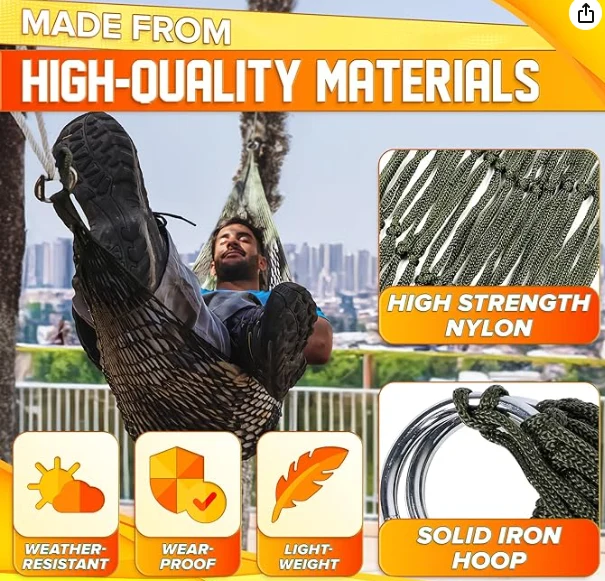 එල්ලෙන හැම්මොක් කඳු නැගීම, මෙම නයිලෝන් නූල් හැමෝක්ට ඉහළ බර දරණ ධාරිතාවක් ඇත. මෙම නයිලෝන් කපන කඹ කපිතාන් ගෘහස්ථ හා එළිමහනේ ඉහළ කල්පැවැත්මක් සහ ඇඳීමට හා ඉරීමට ප්රතිරෝධී වේ