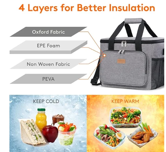 පරිවරණය කළ විනෝද චාරිකා, දිවා ආහාර මල්ල පරිවරණය කර ඇති පරිවරණය කළ ද්රව්ය වලින් සාදා ඇති අතර පැය 5 කට වඩා සිසිල් හෝ උණුසුම්ව තබා ගත හැකිය. ඊට අමතරව, අභ්යන්තර ලයිනිං ආහාර ශ්රේණියේ පෙ.ව පෙවාස තීරයේ සාදා ඇති බැවින් ඔබේ ආහාර කිසිදු කනස්සල්ලකින් තොරව කෙලින්ම බෑගයට දැමිය හැකිය. සාදන ලද 6mm එප් පෙඩොම් ඔබේ බහාලුම්, ආහාර සහ බීම සඳහා විශාල ආරක්ෂාවක් සපයයි.