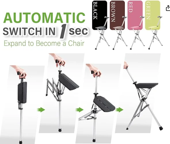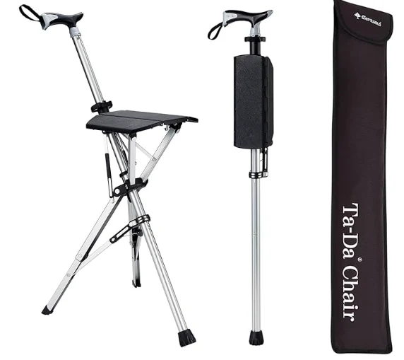 මහලු අය පංකා කාව්යයක්, විවේක ගැනීම සඳහා විවේක ගැනීම, විවේක ගැනීම සහ කඳු නැගීමේ සැරයටියක්. මෙම සැලසුම ක්ෂණිකව කඳු නගින්නෙකු සැණෙකින් පුටුවකට ගෙන යන මෙම සැලසුම මොහොතක දැනුම්දීමකින් වෙහෙසට පත් කකුල් සහ දණහිස් සඳහා විවේක ගන්න.