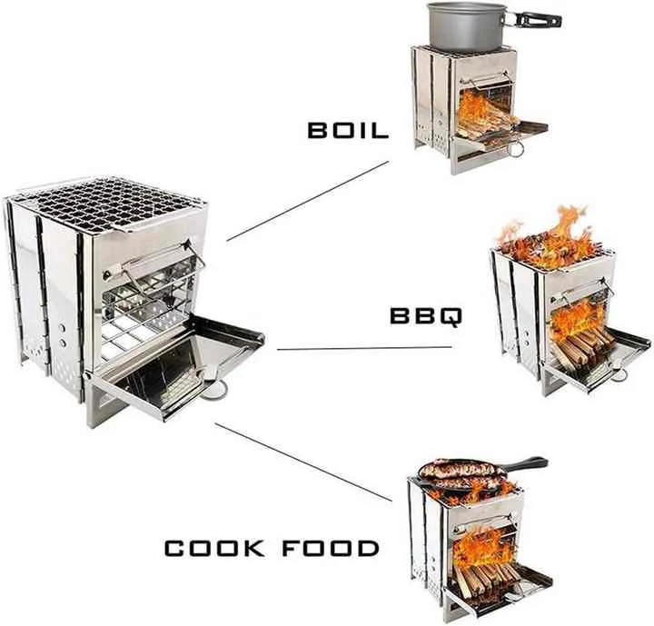 මල නොබැඳෙන වානේ වලින් සාදා ඇති මල නොබැඳෙන වානේ මිනි කැසට් උදුන, දර රොකට් උදුන දීර් extend කළ හැකිය. ගමන ඉදිරියට ගෙන යාම ඉතා පහසුය.