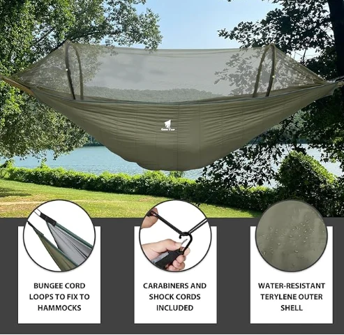 කඳවුරු බැඳීම - 20D 380t ජල ආරක්ෂිත නයිලෝන් ප්ලේඩිට් රෙදි සෙලෝෆ් ප්ලේන් ප්ලේඩ්රික් සෙලෝෆ් ප්ලේන් ප්ලේ ෂෙල් සඳහා කැපී පෙනෙන කඳවුරු හැම්මොක් සමඟ ගමන් කරන්න. අනුකරණය සිල්ක් ෆ්ලෝස් පිරවීම, සම - මිත්රශීලී, සුවපහසු