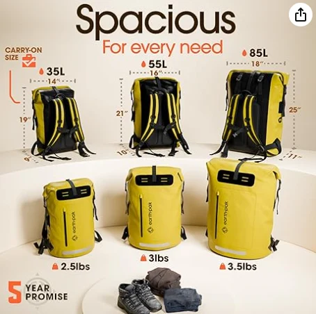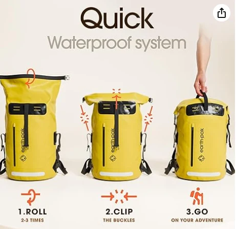 ජල ආරක්ෂිත වියළි බැක්පැක් ඩෆල් බෑගය. මල්ලේ ඇතුළත සහ පිටත සාක්කු සමඟ පැල්ලම්. බාහිරව විශාල ස්ප්ලෑෂ් -ලේෂිෂ් -ලෑෂ් සිපර් එකක්, සහ බාල වයස්කාර සිප් කළ සාක්කුවක, එනම් මධ්යයේ මැදිරි එළිමහන් නිෂ්පාදන සහ යතුරුපැදිය, ගුවන්යානා ඉහළ වසා දැමීම සඳහා සැහැල්ලු හා සැහැල්ලු හා ප්රධාන වළල්ල උරහිස් පටි සහ මොලී ක්රමයටම පහසු ඩී-මුදු සහ මොලී ක්රමයට ලූප් කිරීම, බෝට්ටු හෝ බයිසිකල් පැදීම අතරතුර නැංගුරම දෙයට යොමු කරයි.